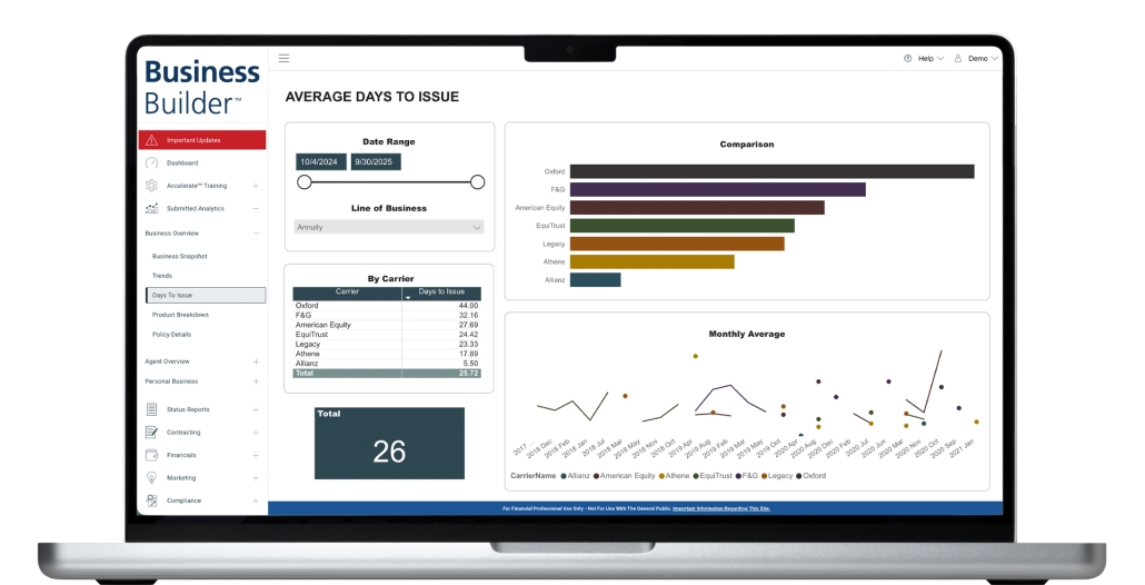 With the power of Business Builder, managing your agency and your downline has never been easier. Business Builder uses the power of real-time analytics to put valuable insights into your agency at your fingertips so you can make smarter, data-driven decisions. Plus, you’ll work with a dedicated case manager to assist you, your agents, and your internal staff.